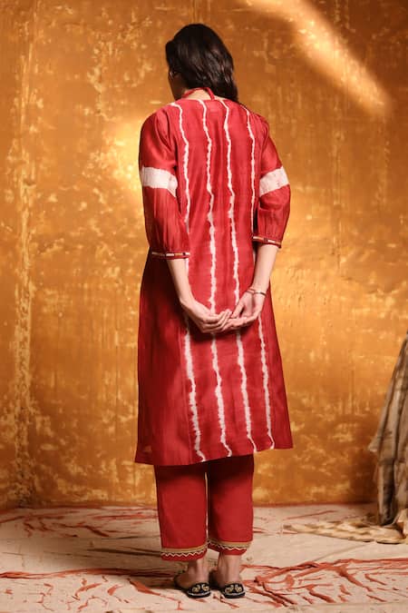 Maroon Handloom Cotton, Cotton, Chanderi Mirrors, Beads, Tie Dye Kurta Set