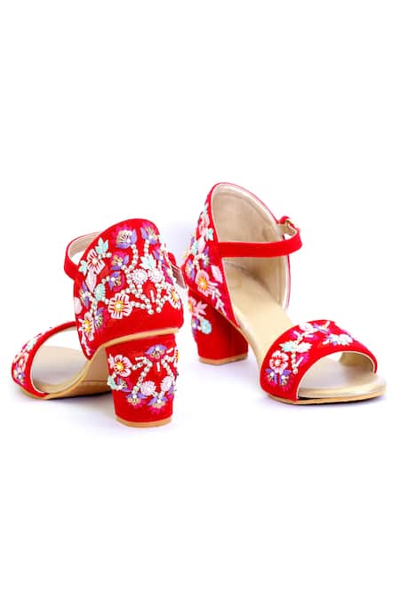Shiveen Shiveen_Red Embroidery Dhyana Block Heels _Online_at_Aza_Fashions