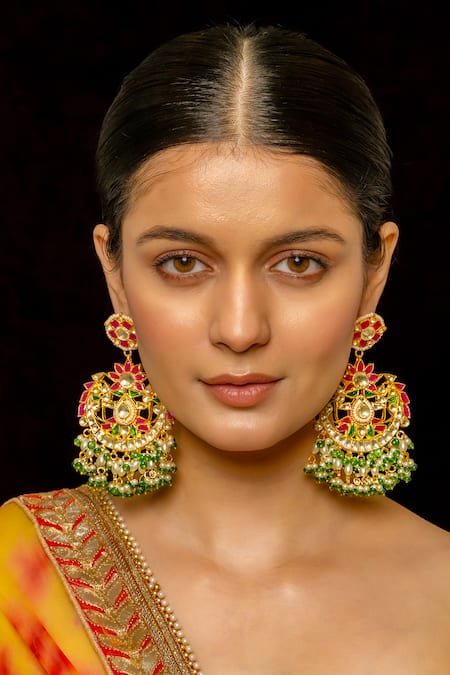 Buy_Shlok Jewels_Multi Color Pearls, Diamonds, Stones Callista And Kundan Embellished Chandbalis _at_Aza_Fashions
