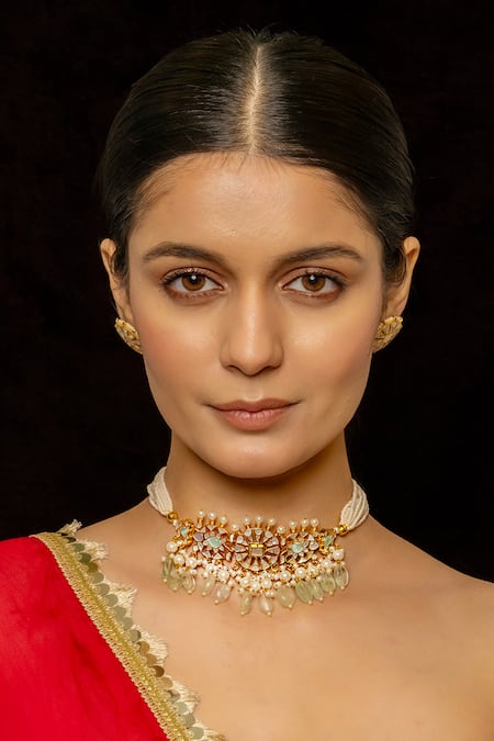 18kt gold plated with geometric cutwork, Kundan and semi-precious stone detailing, Adjustable dori closure for comfort