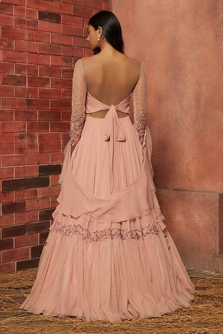 Buy_Shloka Khialani_Pink Net, Crepe, Georgette Embellished Anarkali With Dupatta_Online_at_Aza_Fashions