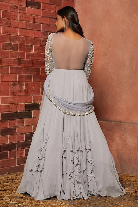 Buy_Shloka Khialani_Purple Net, Georgette Embellished Anarkali With Dupatta _at_Aza_Fashions