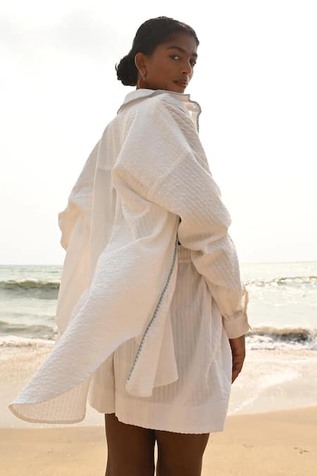 White Cotton Embroidery Collared Aster Shirt