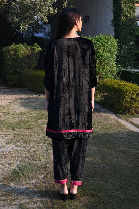 Buy_Shorshe Clothing_Black Velvet, Cotton, Satin Sequins, Beads, Coin Embroidered Kaftan With Salwar