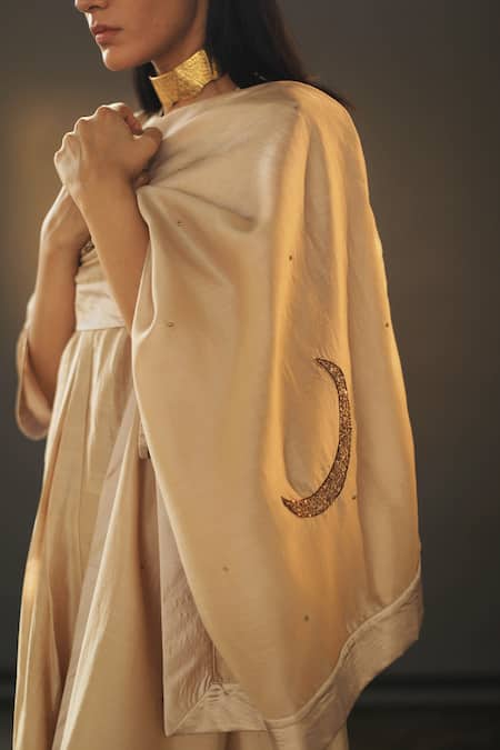 Beige chanderi stole featuring intricate sequin and cutdana embroidery