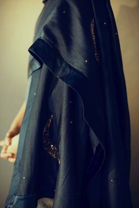 Navy chanderi stole featuring sequin and cutdana embroidered motifs