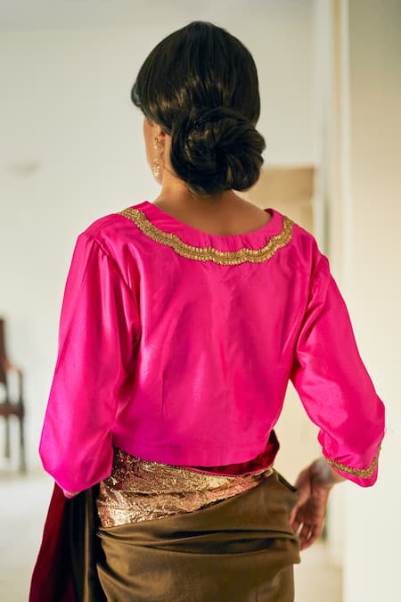 Pink Handloom Silk V Neck Blouse