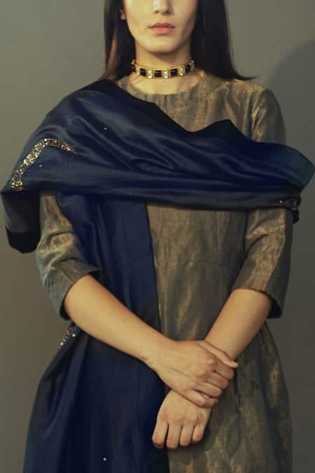 Brown Handloom Tissue Round Kurta Set
