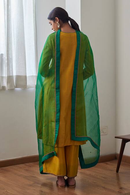 Green Organza Embroidery Placement Zardozi Hand Dupatta