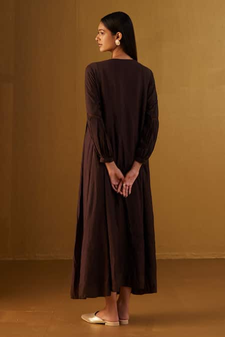 Brown Chanderi Embroidery Round Neck Vaani Choga Yoke Woven Anarkali