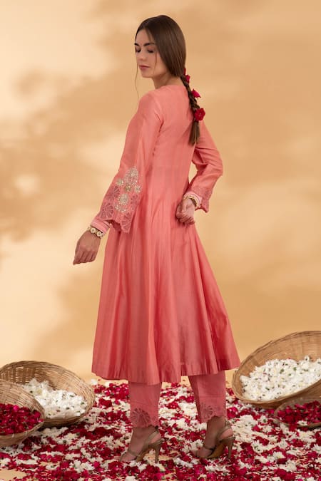 Pink Chanderi, Organza, Cotton Satin Embroidery Gulshan Angrakha Anarkali Set