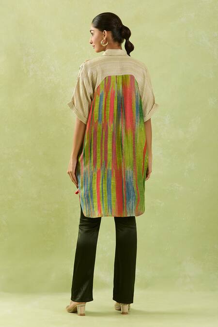 Shop_Shraddha Rambhia_Ivory Heavy Slub Printed Floral Collar Shirt Tunic_Online_at_Aza_Fashions