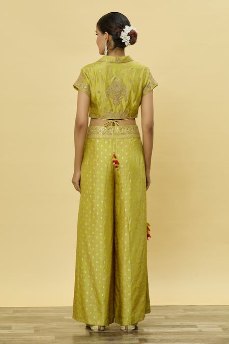 Tassel detail on pant, Attached lining, Golden marodi embroidery