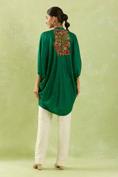 Bottle green tunic featuring multicolor resham and cutdana embroidery