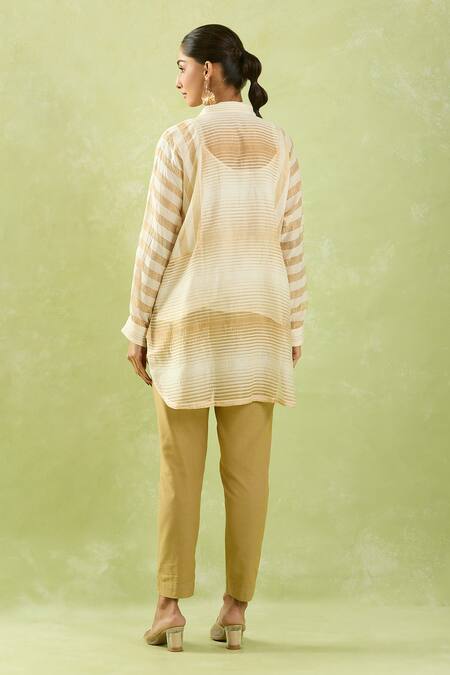 Ivory Fine Chanderi Woven Stripe Collar Tunic