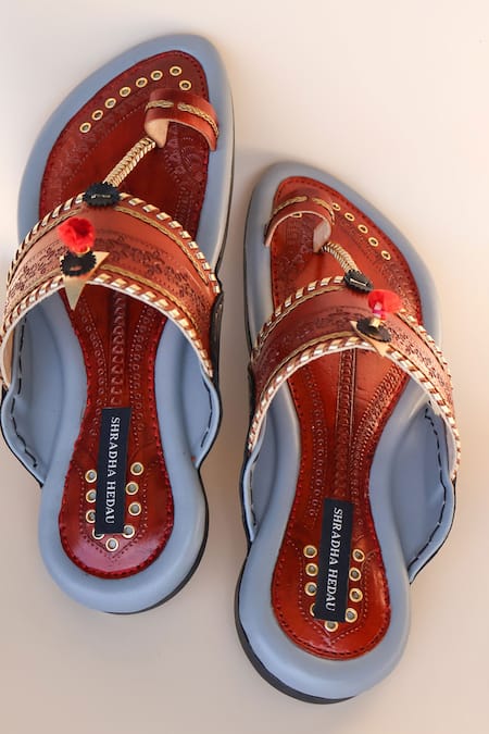 Intricate detailing on the upper strap, Pom-pom embellishments on the straps, Braided design elements