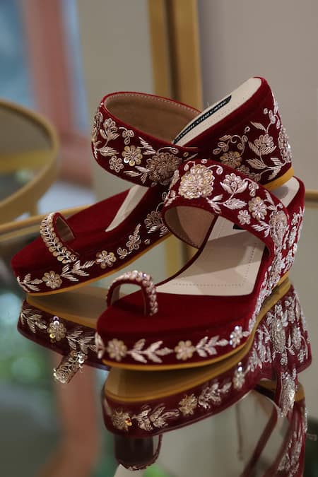 Maroon Embroidery Ezra Zardozi Work Wedges