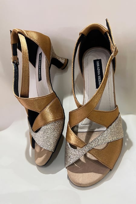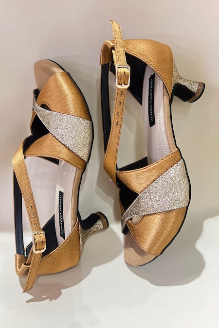 Gold Glitter And Silver Shimmer Strap Heels