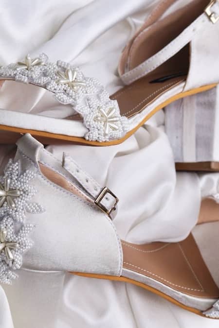 White Pearls Iris Embellished Strap Heels