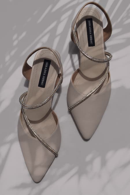 Buy_Shradha Hedau Footwear Couture_Beige Stones Monica Embellished Block Heels _at_Aza_Fashions