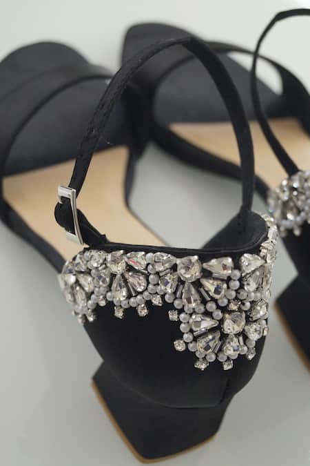 Buy_Shradha Hedau Footwear Couture_Black Crystal Phoenix Embellished Block Heels _Online_at_Aza_Fashions