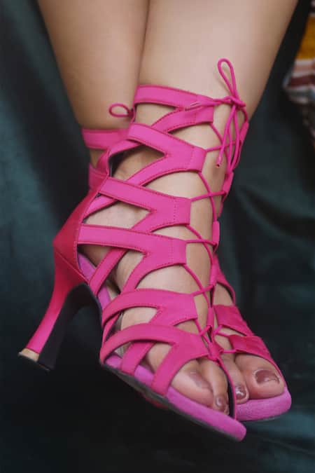 Criss-cross pattern design, Ankle tie detail, Satin finish