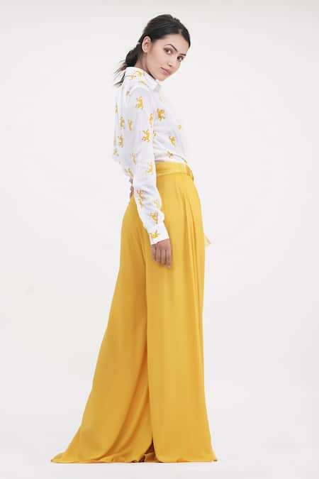 Buy_Shruti S_Yellow Modal, Organza Gota Patti, Sequins Collared Falling Man Print Jumpsuit_at_Aza_Fashions