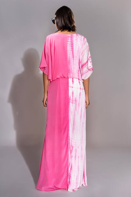 Pink Crepe V-neck And Tie Dye Maxi Dress