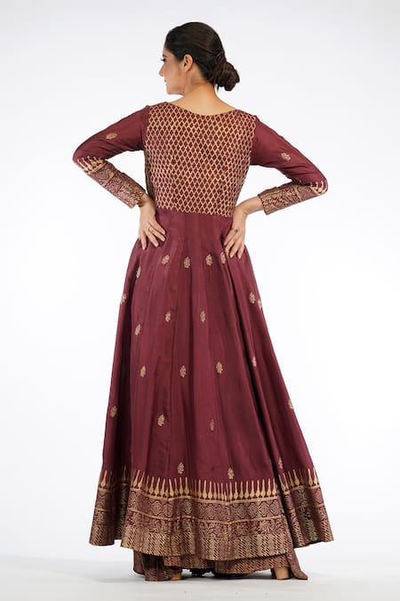 Buy_Shruti S_Brown Angrakha  Silksharara  Modaldupatta  Organza Hand Block Silk Set_Online_at_Aza_Fashions