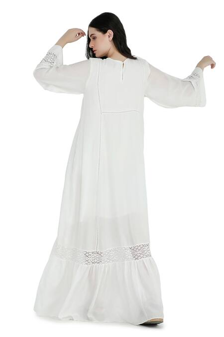 White Silk Embroidery Round Neck Mulmul High Low Midi Dress