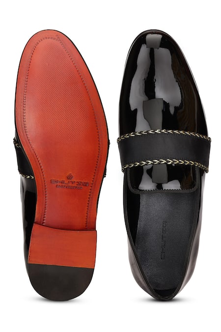 Black Embroidered Auric Cummerbund Leather Shoes
