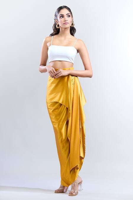 Yellow Solid Satin Draped Skirt