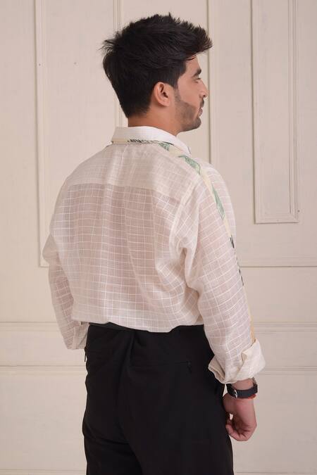 Buy_Shwetanga_Ivory Cotton Patchwork Checkered Print Shirt _at_Aza_Fashions