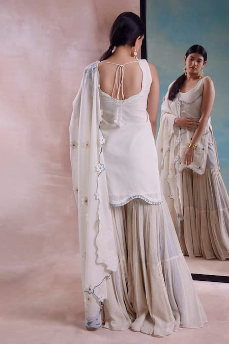 Buy_Shwetanga_Ivory Cotton, Polyester, Organza Beads, Lace, Flora Garden Kurta Sharara Set _at_Aza_Fashions