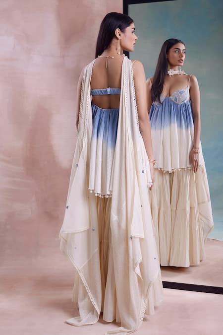 Buy_Shwetanga_Ivory Organza, Cotton Beads Sweetheart Neck Ombre Bralette Tunic Sharara Set _Online_at_Aza_Fashions