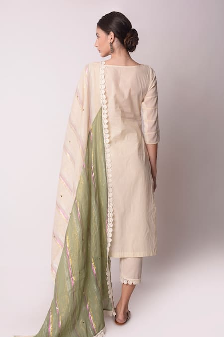 Buy_Shwetanga_White Organic And Gota Patti, Patch Work, Floral Lace Kurta Pant Set _at_Aza_Fashions