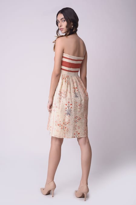 Buy_Shwetanga_White Organic Cotton Floral Motifs Straight Printed Smocked Dress _Online_at_Aza_Fashions