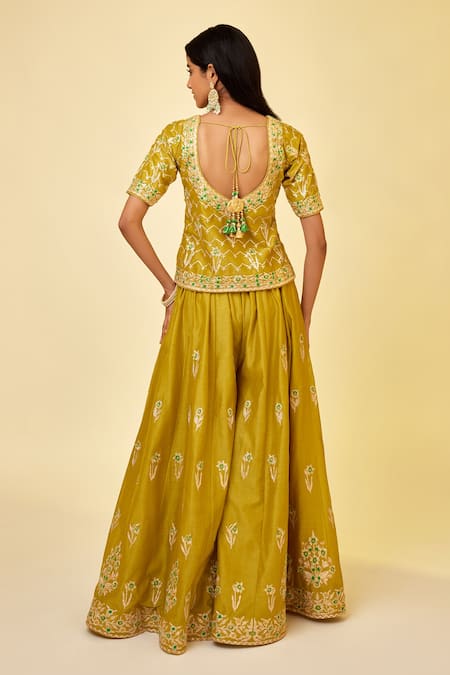 Green Chanderi Silk Gota Patti, Embroidery, Sequins, Tassels V-neck Sharara Set