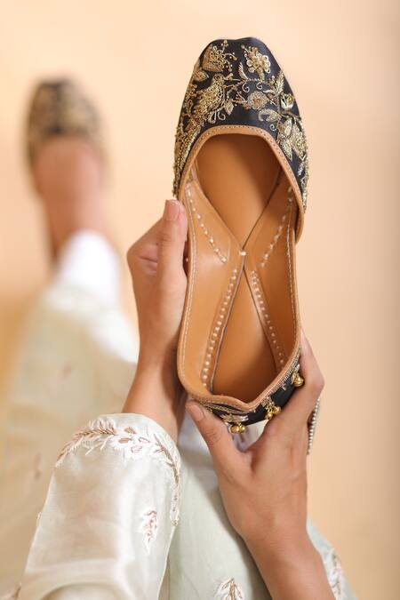 Buy_Kala_Black Shyen Zardozi Embroidered Juttis_at_Aza_Fashions