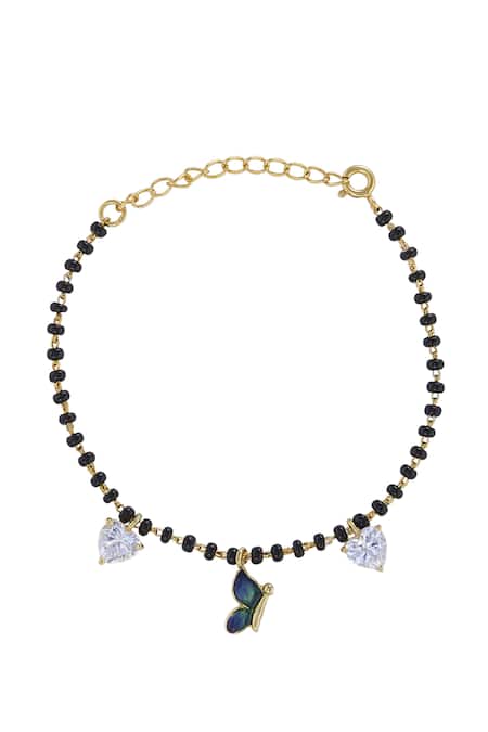 Black mangalsutra bracelet crafted from 925 silver featuring rhodium gold plating