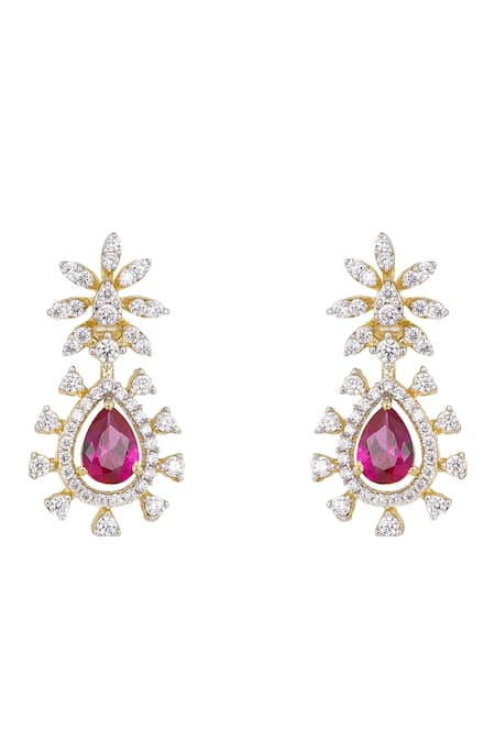 Teardrop-shaped pink stone, Floral & sunburst cubic zirconia design