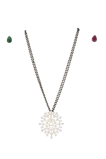 Black mangalsutra featuring a designer pendant crafted from 925 silver with gold plating.