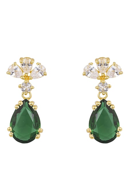 Gold plated 925 silver earrings featuring green stone embellishments.