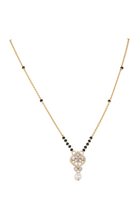 Black 925 silver mangalsutra featuring a gold-plated design with a pearl drop.