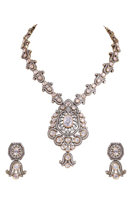 Bullian leaf motif in necklace design, Cubic zirconia and moissanite polki embellishments