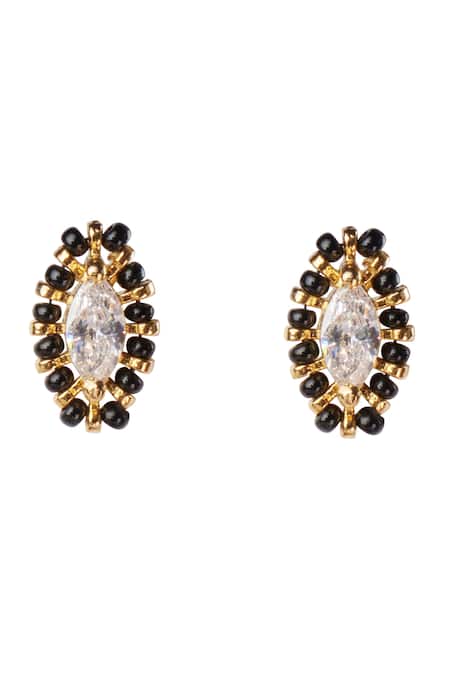 Black stud earrings featuring cubic zirconia and bead embellishments