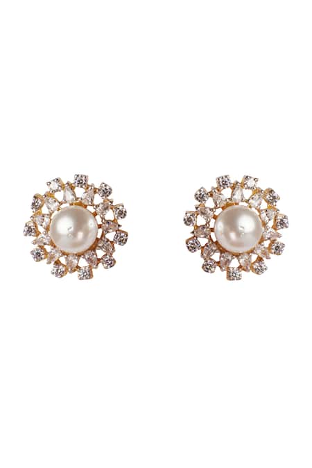 White Crystals Cubic Zirconia Pearl Stud Earrings