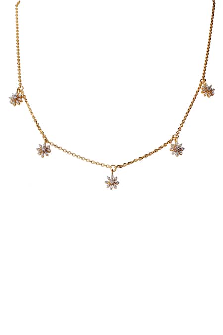 White necklace featuring cubic zirconia embellishments in a dainty bloom design