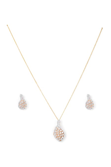 White Crystals Cubic Zirconia Embellished Pendant Necklace Set
