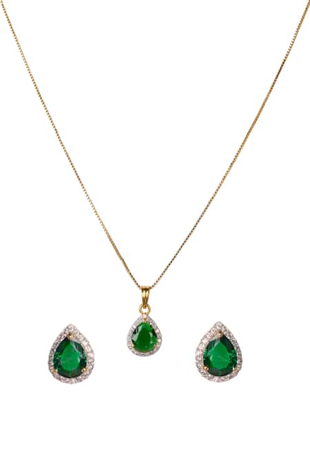 Green Crystals, Stones Cubic Zirconia Faux Emerald Pendant Set